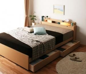 スーパSALE10倍&4時間限定10%OFF 照明・棚付き収納ベッド ボンネルコイルマットレス付き シングル