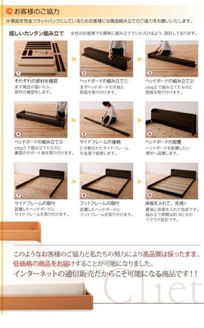 棚・コンセント付きフロアベッド プレミアムポケットコイルマットレス付き セミダブル