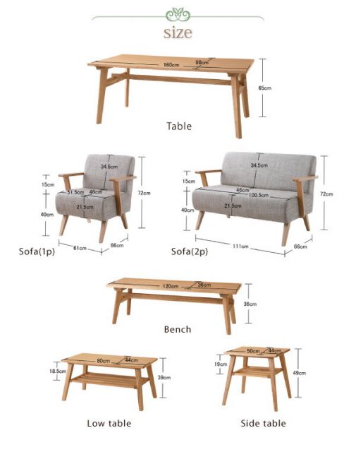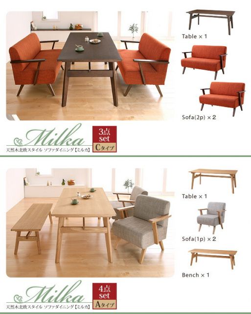 (テーブル+2Pソファ1脚+ベンチ1脚)3点セット