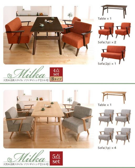 スーパSALE10倍&4時間限定10%OFF ダイニングセット(テーブル&チェア) 4人 天然木北欧スタイル ソファダイニング 5点セット(テーブル+チェア4脚) W160
