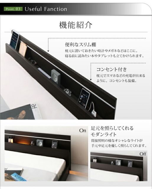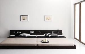 スーパSALE10倍&4時間限定10%OFF モダンライト・コンセント付き国産フロアベッド ラテックス入り国産ポケットコイルマットレス付き ワイドK230