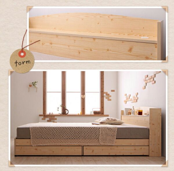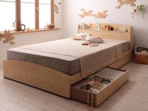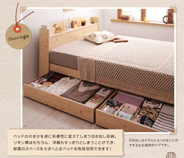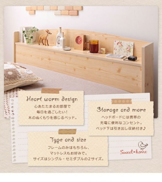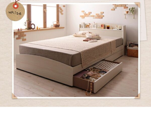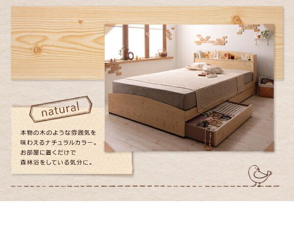 カントリーデザインのコンセント付き収納ベッド プレミアムボンネルコイルマットレス付き シングル