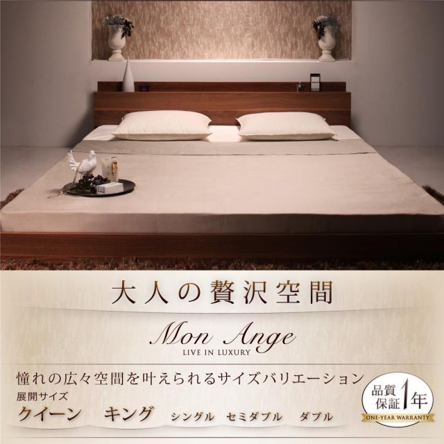 棚・コンセント付きフロアベッド マルチラススーパースプリングマットレス付き シングル