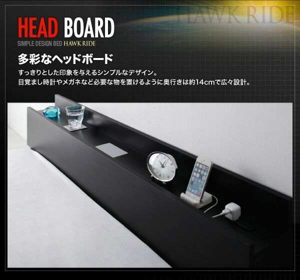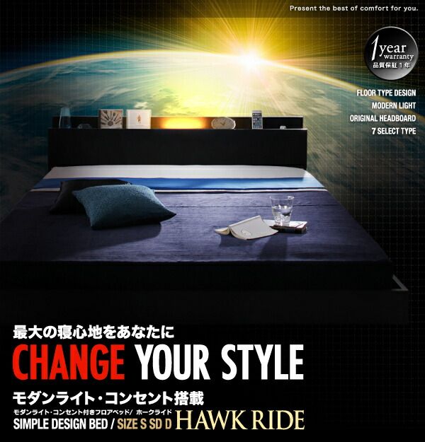 モダンライト・コンセント付きフロアベッド 国産カバーポケットコイルマットレス付き シングル