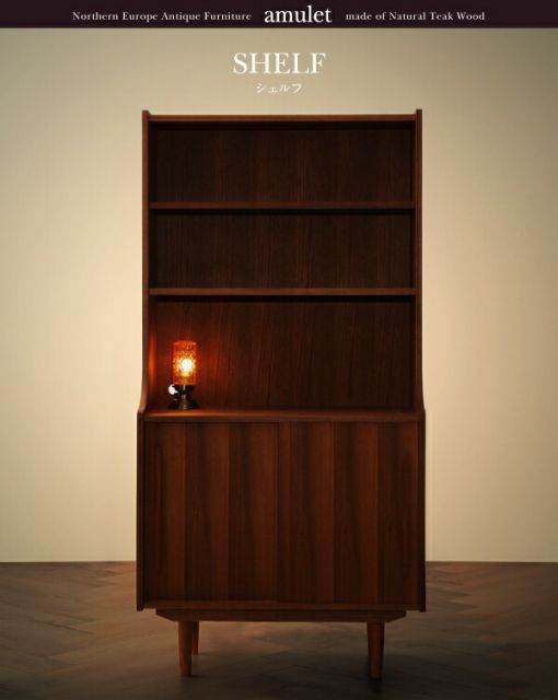 スーパSALE10倍&4時間限定10%OFF リビング収納 チェスト キャビネット タンス テレビ台 天然木チーク材北欧アンティーク風リビング収納シリーズ シェルフ