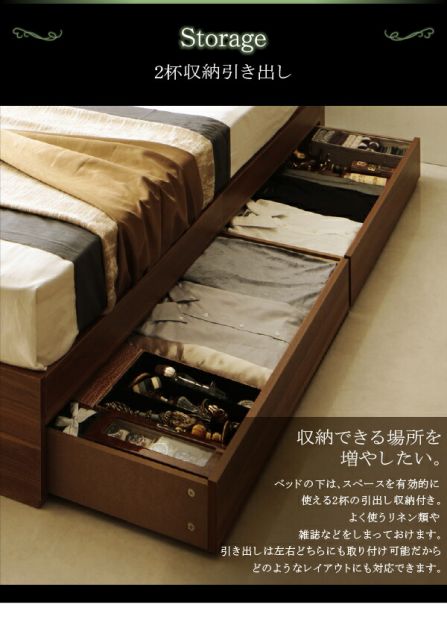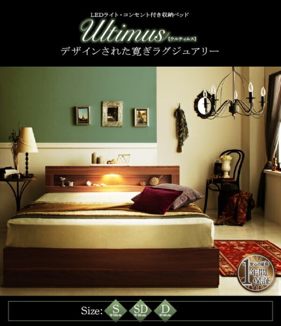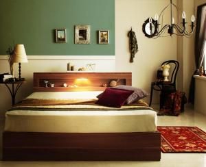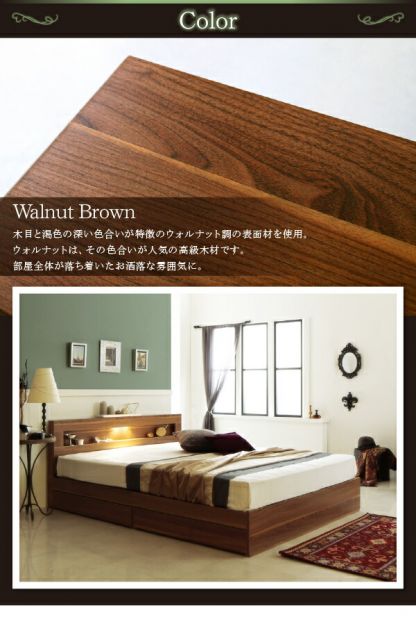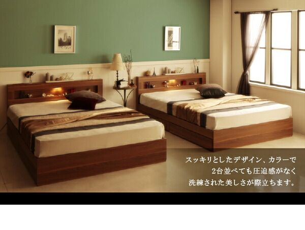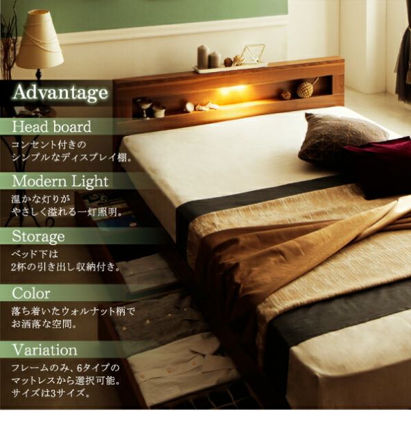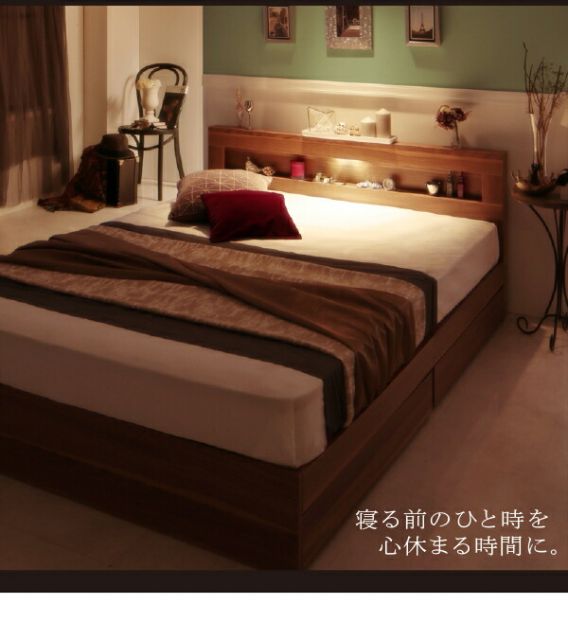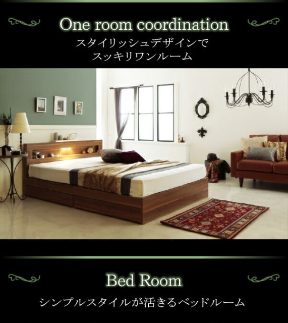LEDライト・コンセント付き収納ベッド スタンダードボンネルコイルマットレス付き セミダブル