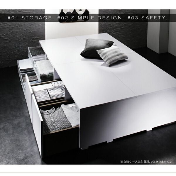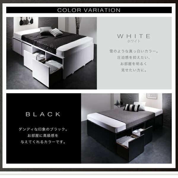 衣装ケースも入る大容量デザイン収納ベッド 薄型スタンダードポケットコイルマットレス付き 引出し2杯 セミダブル