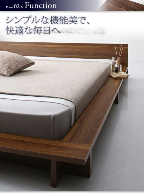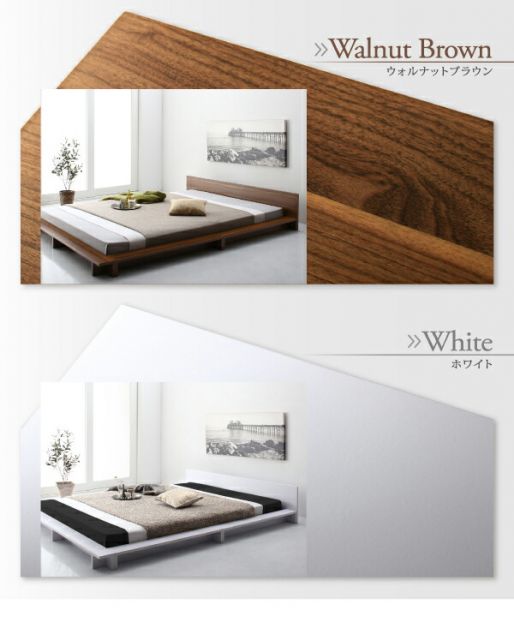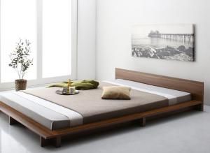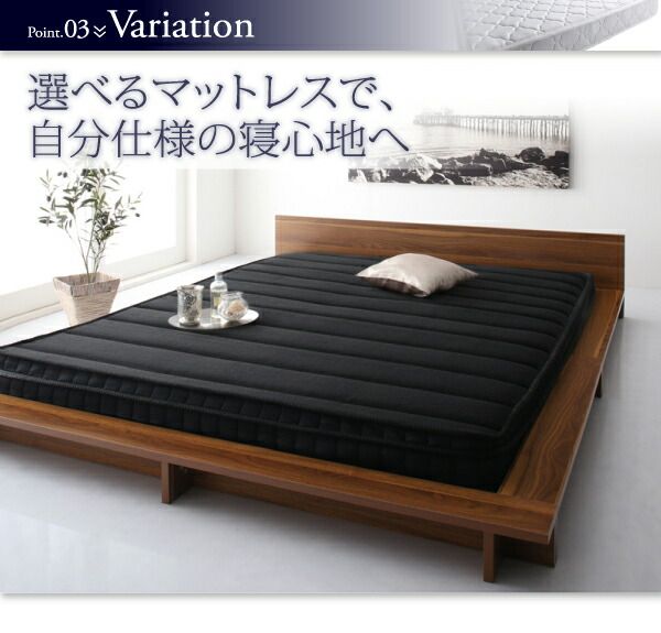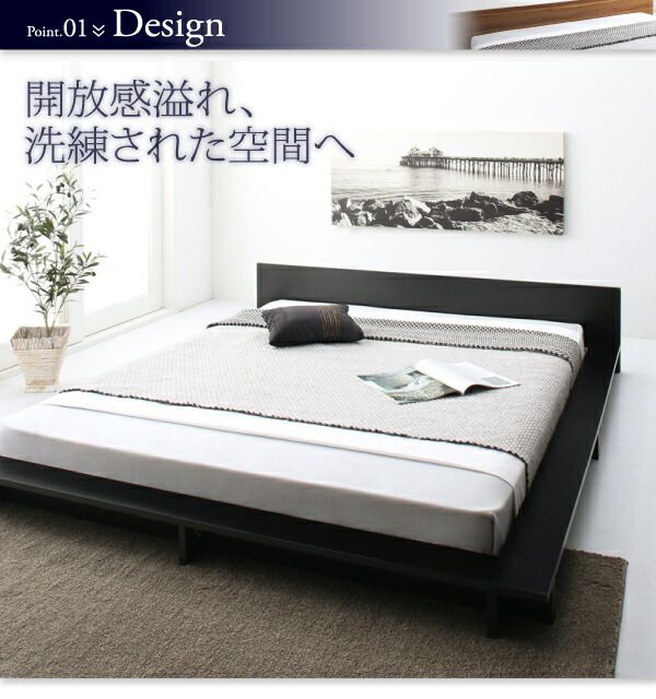 シンプルモダンデザインフロアローステージベッド スタンダードボンネルコイルマットレス付き ダブル