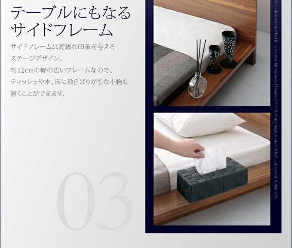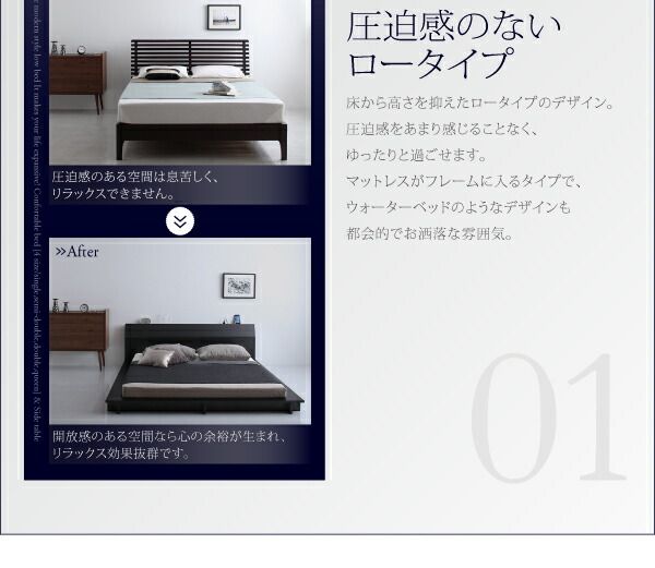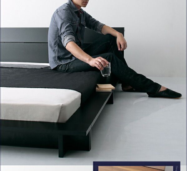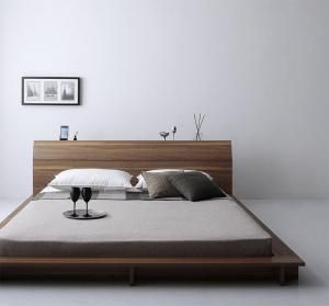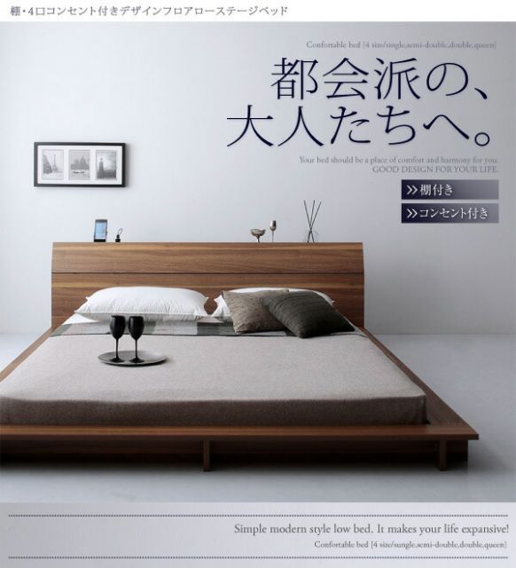 棚・4口コンセント付きデザインフロアローベッド プレミアムポケットコイルマットレス付き シングル