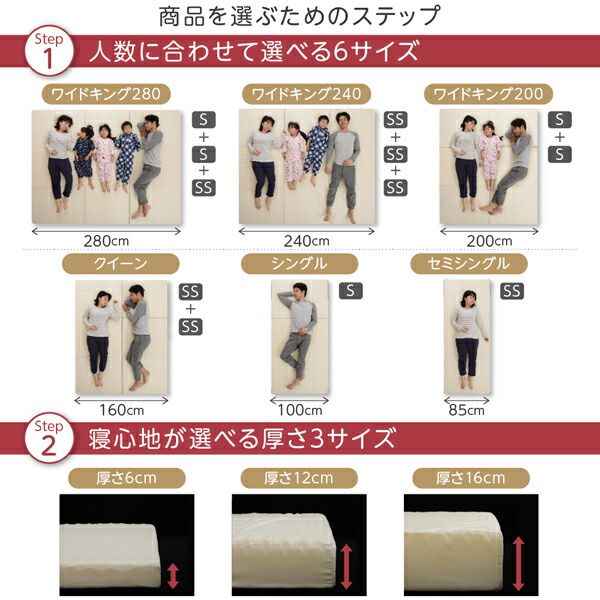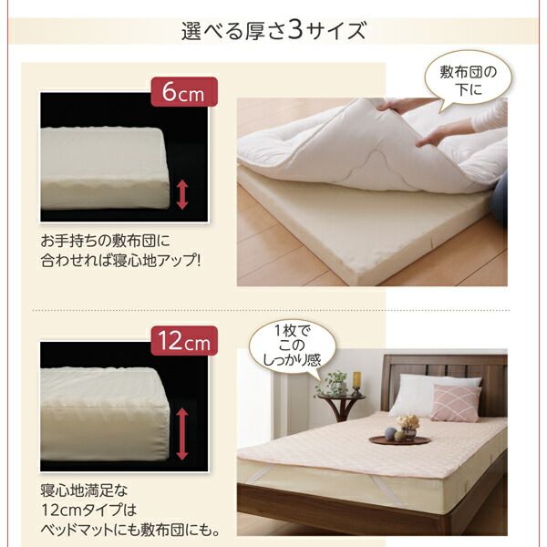 MITAS寝具SELECT 敷き布団 マットレス 豊富な6サイズ展開 3つの厚さが選べる 洗える敷パッド付き ファミリーマットレス敷布団 ワイドK200 厚さ12cm
