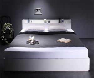 スーパSALE10倍&4時間限定10%OFF 棚・コンセント付収納ベッド スタンダードボンネルコイルマットレス付き セミダブル
