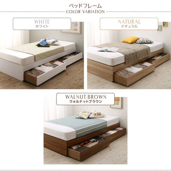 収納付きベッド 収納 引き出し付き コンパクト 180 ショート おしゃれ 狭い部屋 一人暮らし 子供部屋 薄型プレミアムボンネルコイルマットレス付き シングル ショート丈 専用ボックスシーツ&敷パッド付 棚セット