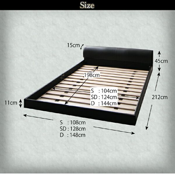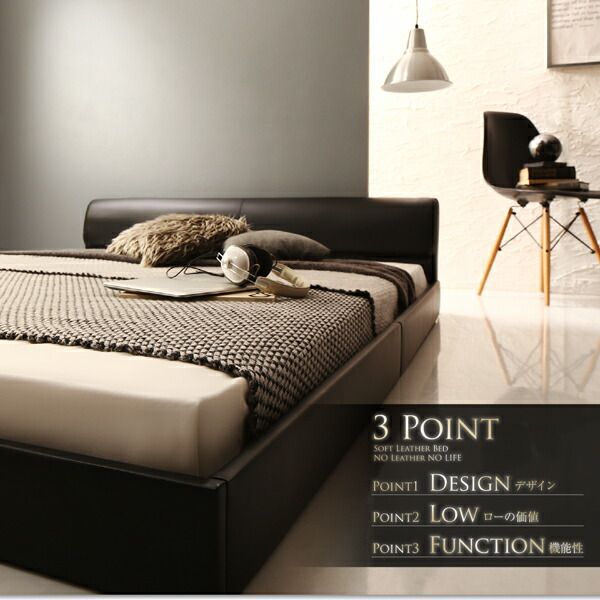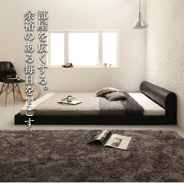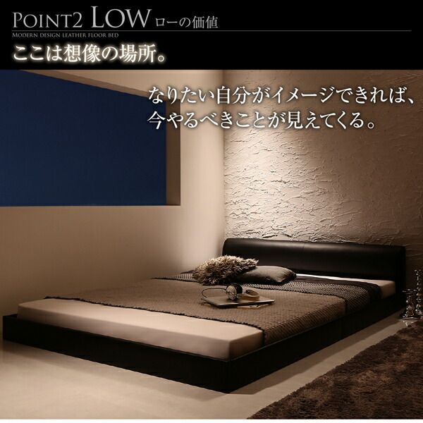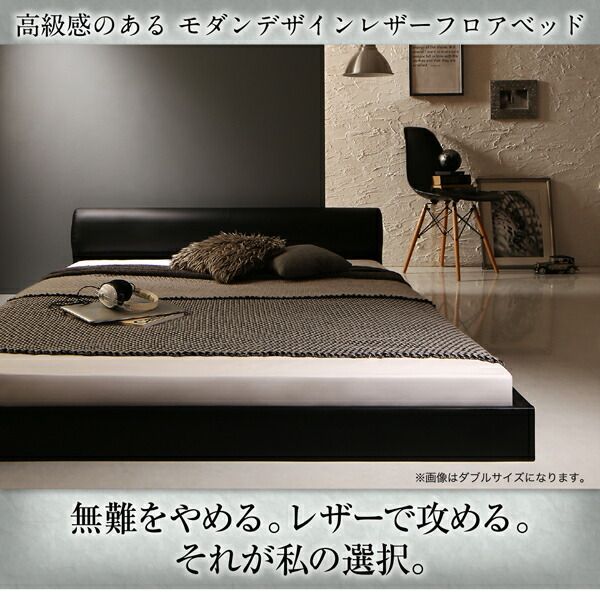 高級感のある モダンデザインレザーフロアベッド スタンダードボンネルコイルマットレス付き ダブル