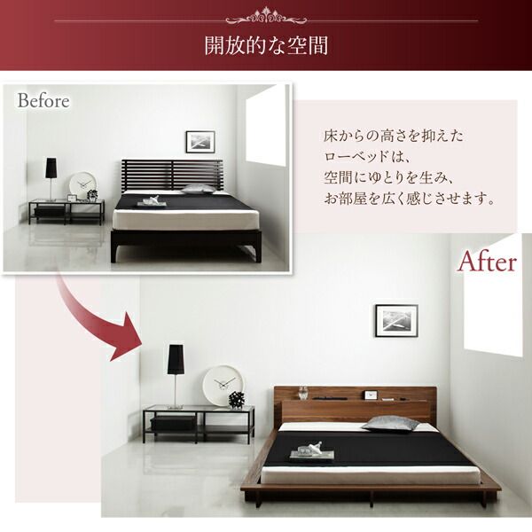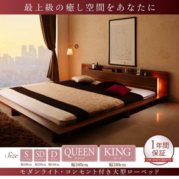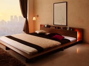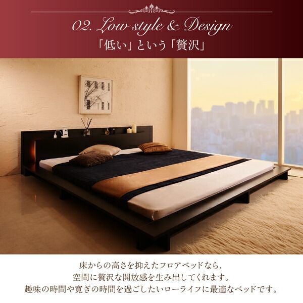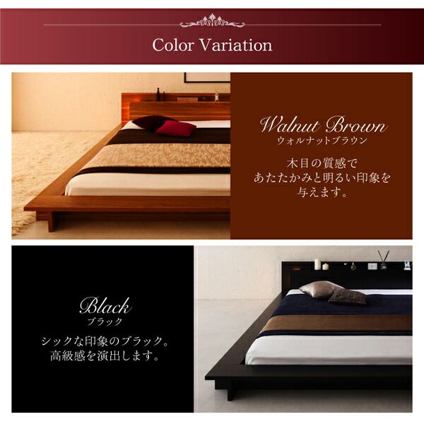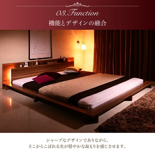 ロングセラー フロアベッド 棚付き 棚 コンセント付き コンセント モダンライト付き 北欧 ウォルナットブラウン ブラック おしゃれ 快適 ゆったり すのこ スタンダードポケットコイルマットレス付き セミダブル