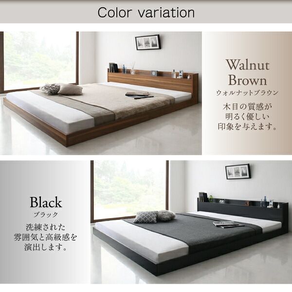 棚・コンセント付き大型フロアベッド プレミアムポケットコイルマットレス付き セミダブル