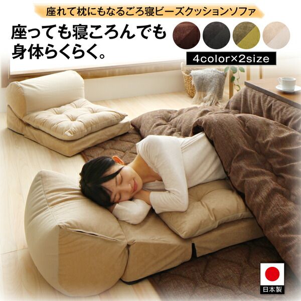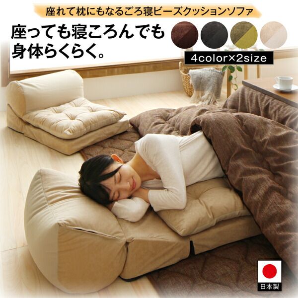 スーパSALE10倍&4時間限定10%OFF マイクロビーズ クッション ソファ こたつ ビーズクッション 座椅子 座布団 国産 1人掛け set セット 2点 座れて枕にもなるごろ寝ビーズクッションソファ 2点セット 1P+1P