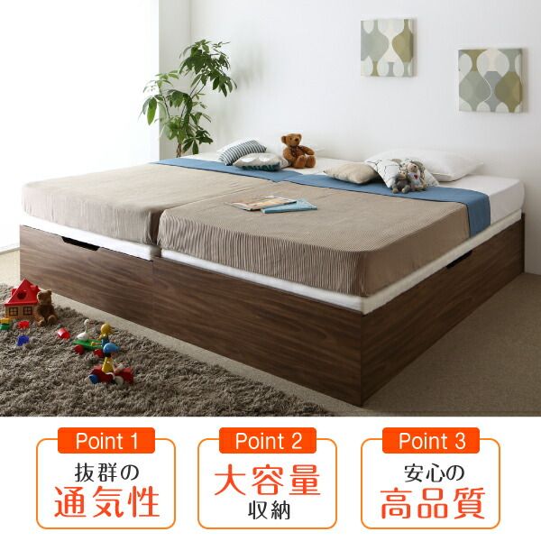 マラソン10倍中 ベッド ベット シングルベッド 収納付きベッド 収納 収納付 跳ね上げベッド 深型 大容量 コンパクト ヘッドレス すのこ おしゃれ お客様組立 マルチラススーパースプリングマットレス付 横開 シングル 深さラージ