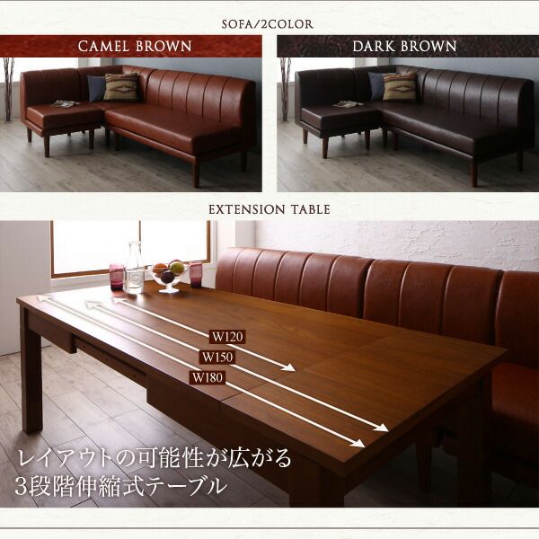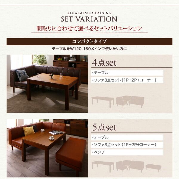 スーパSALE10倍&4時間限定10%OFF ダイニングセット(テーブル&ソファ ベンチ) 6段階高さ調節 伸縮式こたつ 大型ソファダイニング 5人 5点セット(テーブル+2Pソファ1脚+1Pソファ1脚+コーナーソファ1脚+ベンチ1脚) W120-180