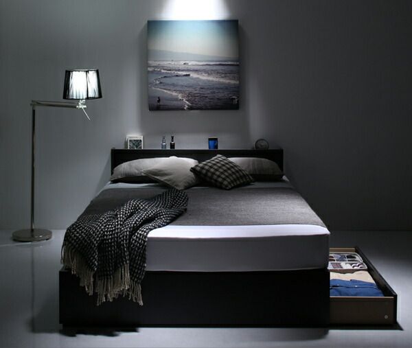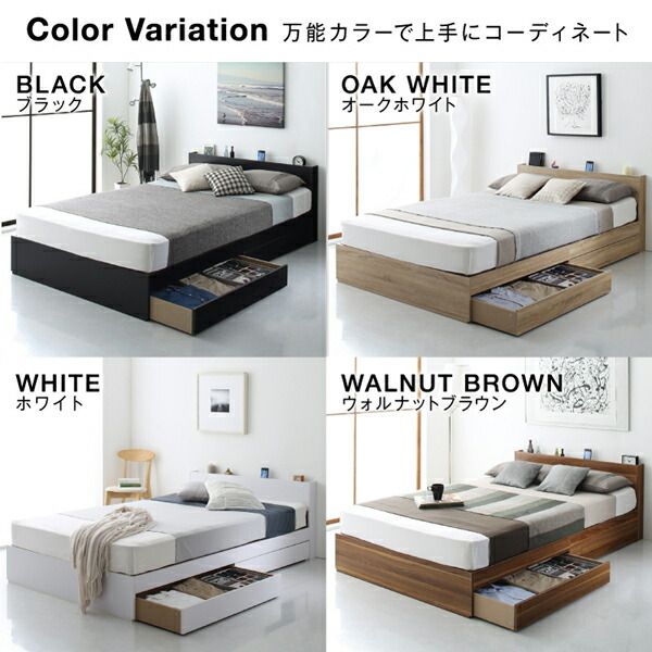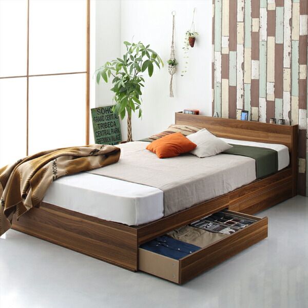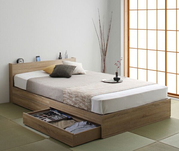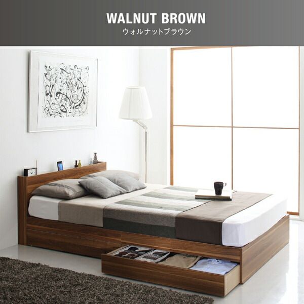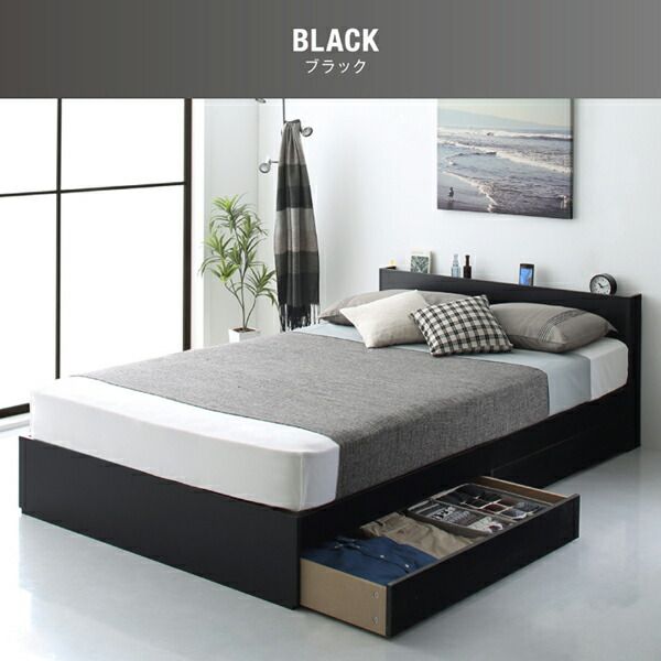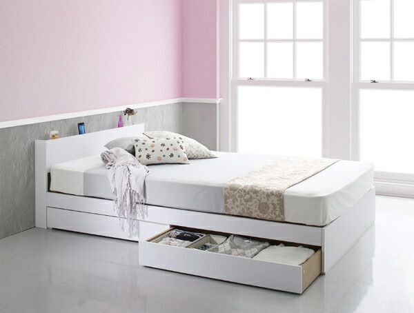 マラソン10倍中 棚 コンセント付き 引き出し 2杯 収納 ベッド スタンダードボンネルコイルマットレス付き ダブル