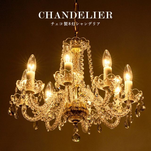 スーパSALE10倍&4時間限定10%OFF ガラスシャンデリア-BL-ボヘミヤ-8灯 45×42×38cm