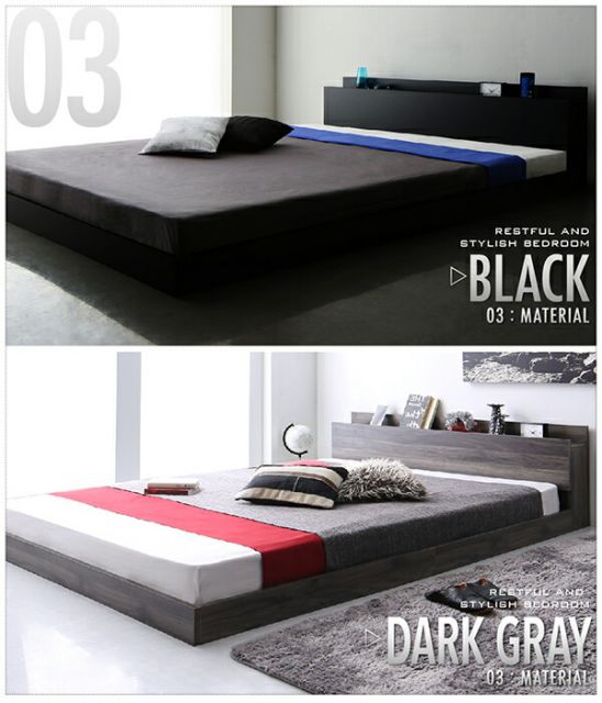 棚・コンセント付きフロアベッド スタンダードボンネルコイルマットレス付き セミダブル 組立設置付