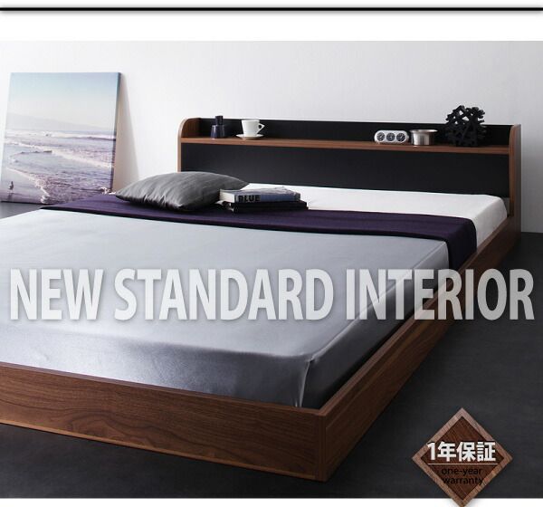 棚・コンセント付きバイカラーデザインフロアベッド スタンダードボンネルコイルマットレス付き セミダブル 組立設置付