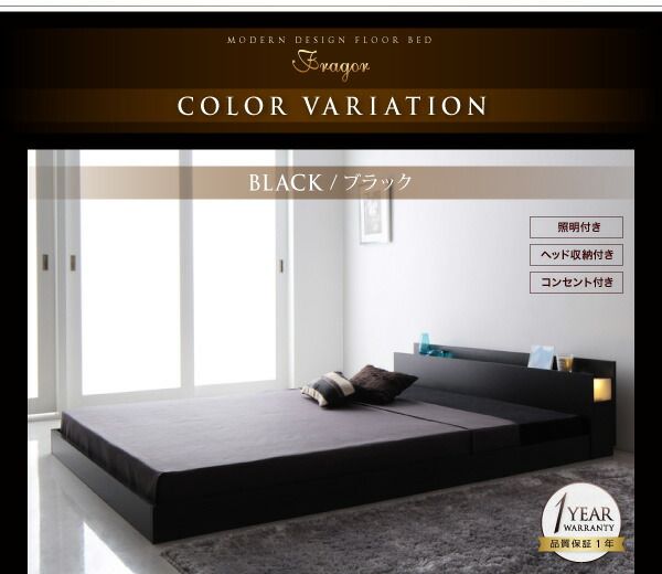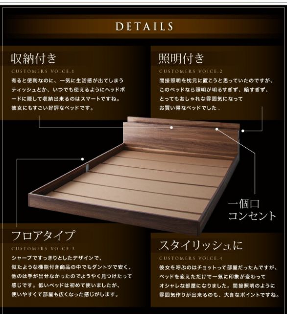 照明&隠し収納付き/モダンデザインフロアベッド スタンダードボンネルコイルマットレス付き シングル 組立設置付