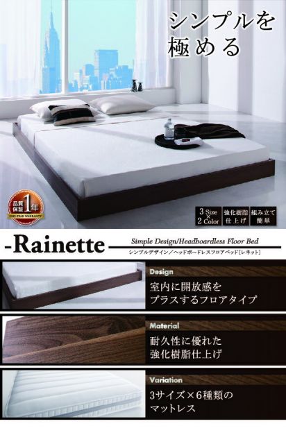 シンプルデザイン/ヘッドボードレスフロアベッド スタンダードボンネルコイルマットレス付き セミダブル 組立設置付