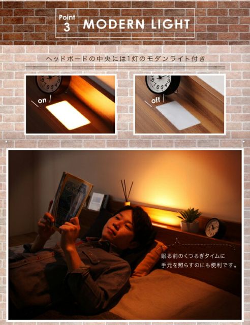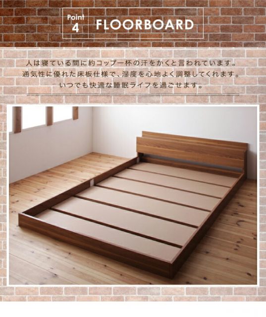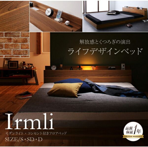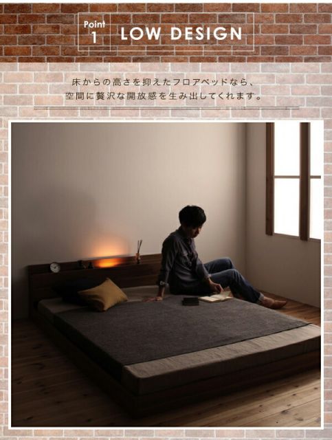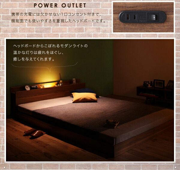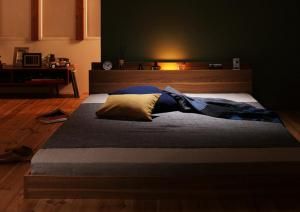 モダンライト・コンセント付きフロアベッド スタンダードポケットコイルマットレス付き シングル 組立設置付