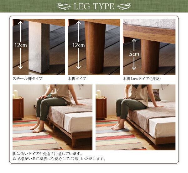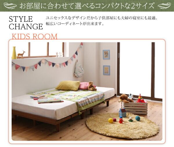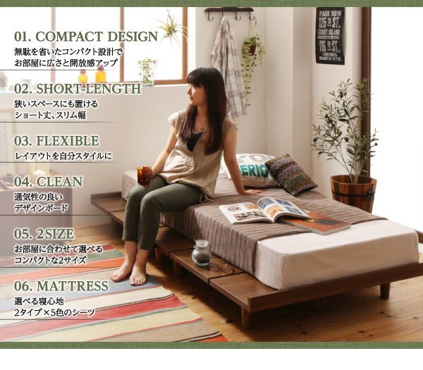 デザインボードベッド スタンダードボンネルコイルマットレス付き 木脚タイプ フルレイアウト セミシングル フレーム幅80 ショート丈 組立設置付