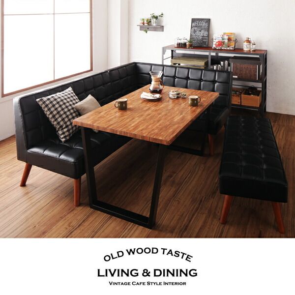 スーパSALE10倍&4時間限定10%OFF ダイニングセット(テーブル&ソファ ベンチ チェア) 古木風 ヴィンテージ カフェスタイル リビングダイニング 6人 5点セット(テーブル+ソファ1脚+アームソファ1脚+チェア1脚+ベンチ1脚) 右アーム W150 組立設置付