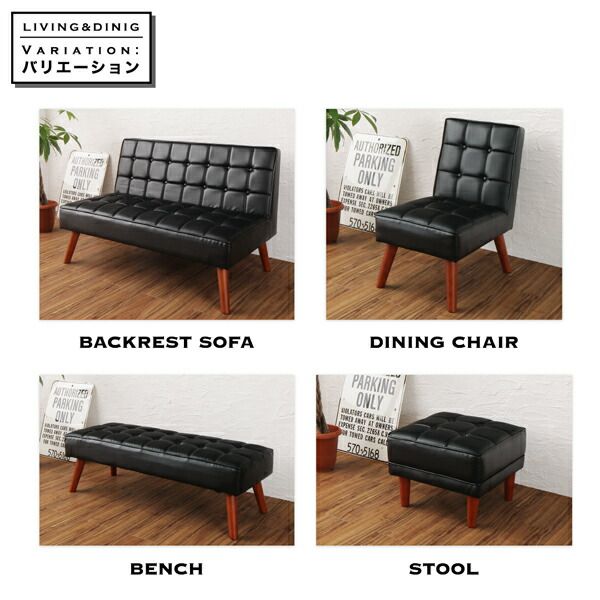 (テーブル+ソファ1脚+アームソファ1脚+ベンチ1脚)4点セット