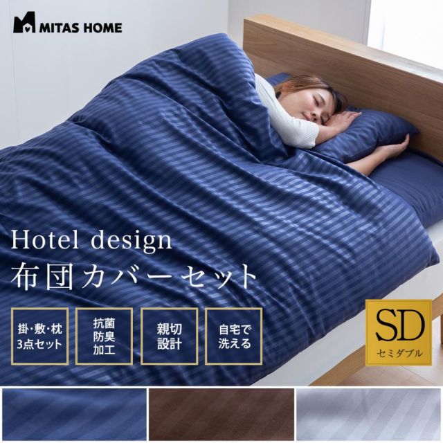 ということで取り付けるだけでガラッとイメージを変えられるホテルスタイルの布団カバーセットを用意しました。