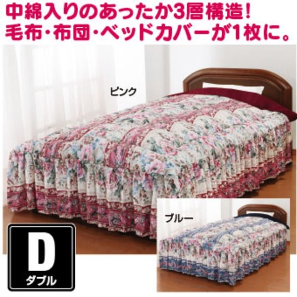あったか3層構造ボリュームマイヤ-毛布地ベッド布団(掛け布団) ダブルサイズ ピンク代引NG