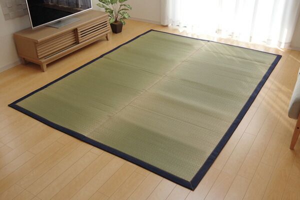 無染土と呼ばれる泥染加工をしていないい草を使用した商品です。無染土のい草はほこりも出にくく、しなやかでい草本来のすべすべとした肌触りの商品です。ヘリには同じ自然素材の綿を使用しており、自然の良さを実感して頂けます。国産(九州産)のい草を使用しており、一本一本が太く、表皮が厚く繊維がキメ細かいので弾力性があり、耐久性に優れています。い草には空気の自然浄化作用、湿度の調節作用などがあります。また汚れにくく、使用するうちに黄金色に変化し味が出ます。