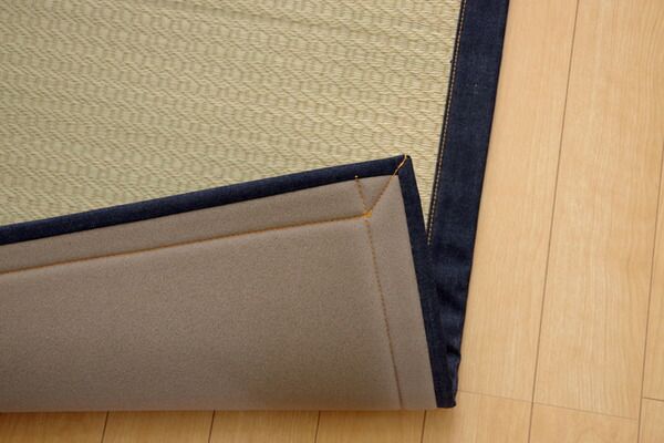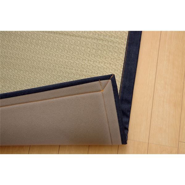 い草 ラグマット/絨毯 約191×191cm デニム 日本製 無染土 裏地ウレタン 調湿 弾力性 耐久性 〔リビング ダイニング〕代引NG