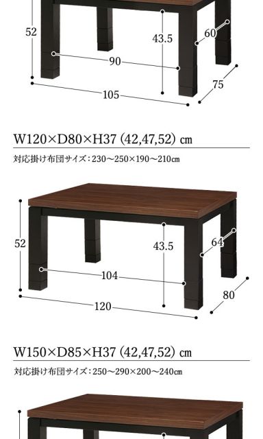 【サイズ】幅120×奥行80×高さ37/42/47/52cm