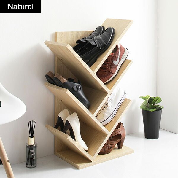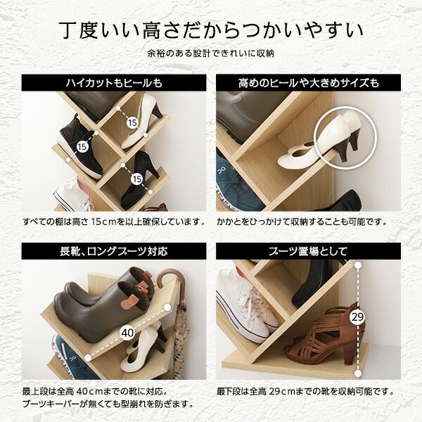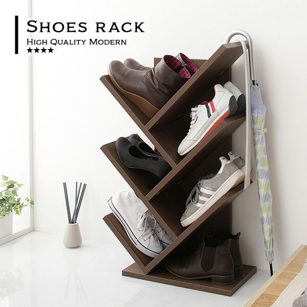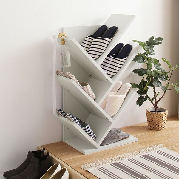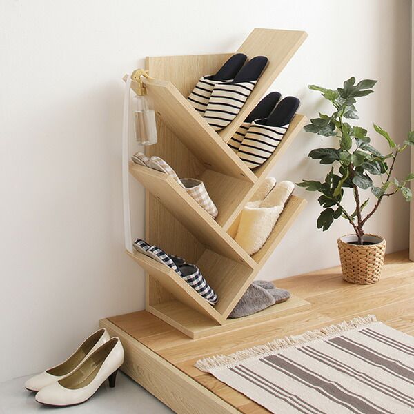 傾斜のついた棚板には傘や靴べらをかけられます。