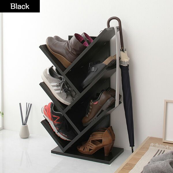 スーパSALE10倍&4時間限定10%OFF シンプルモダン シューズラック/下駄箱 【ブラック】 幅48cm 6足収納可 長靴・ロングブーツ対応 メラミン樹脂加工板使用 木目調 スリム 省スペース 傘立て付き