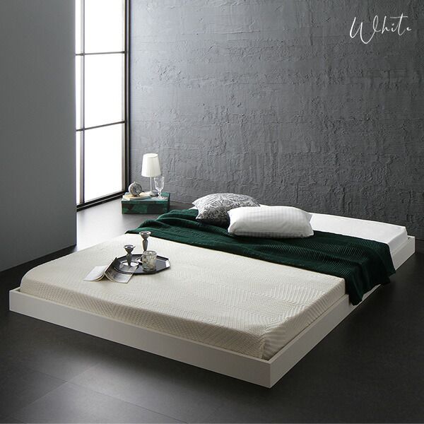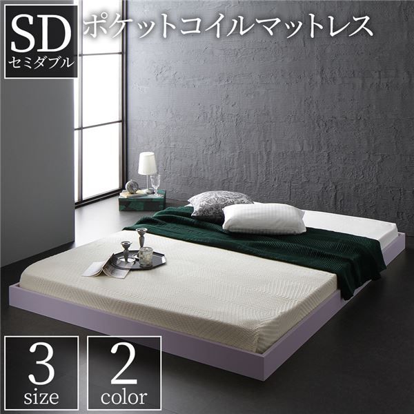 ヘッドボード無し ローベッド フロアベッド セミダブルサイズ (ポケットコイルマットレス付き) スノコ構造 頑丈 木目調 スタイリッシュ ホワイト