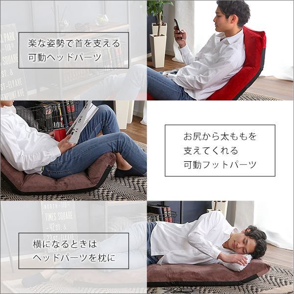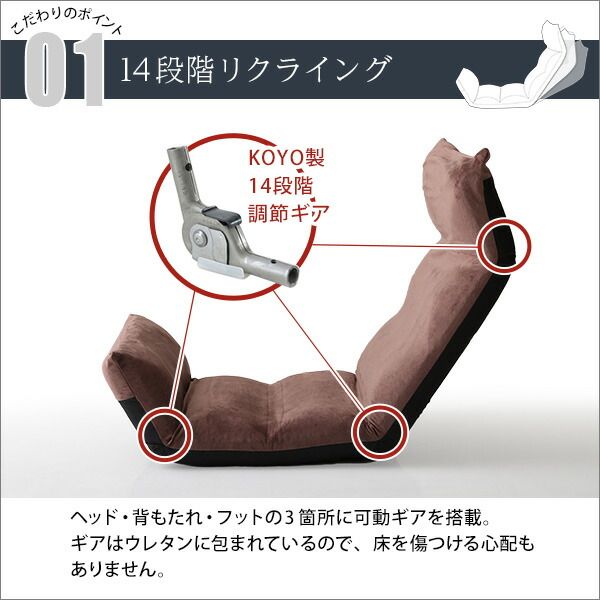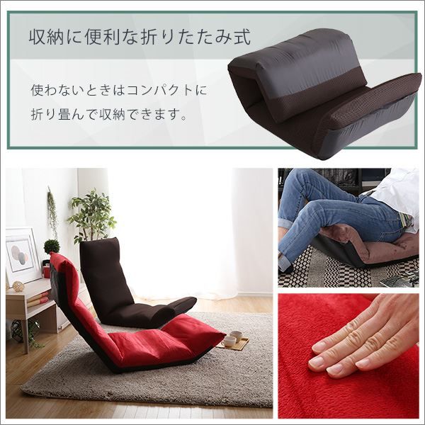 14段階のギアチェンジで絶妙な角度に調整ができるアップスタイル!しっかりと体を支え、疲れにくい形状になっています。コンパクトに折り畳むことができるので収納するのにも便利です。生地はふわふわの起毛タイプとサラッとした通気性のあるメッシュタイプからお選びいただけます。