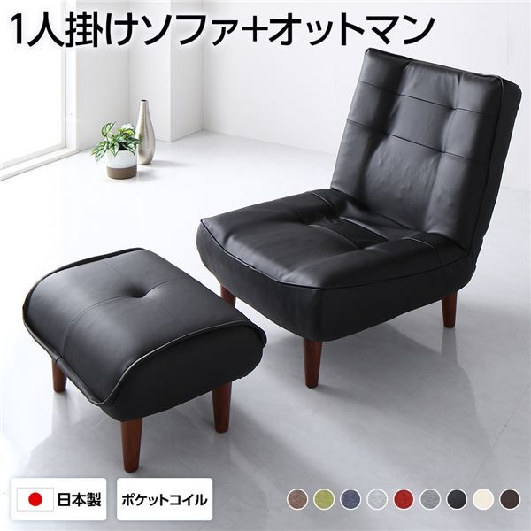 ハイバックソファー フロアソファー 1人掛け オットマン付き PVC生地 ブラック 脚部 ブラウン ポケットコイル使用 リクライニング 脚 取り外し可 日本製 リクライニングソファー 合皮代引NG