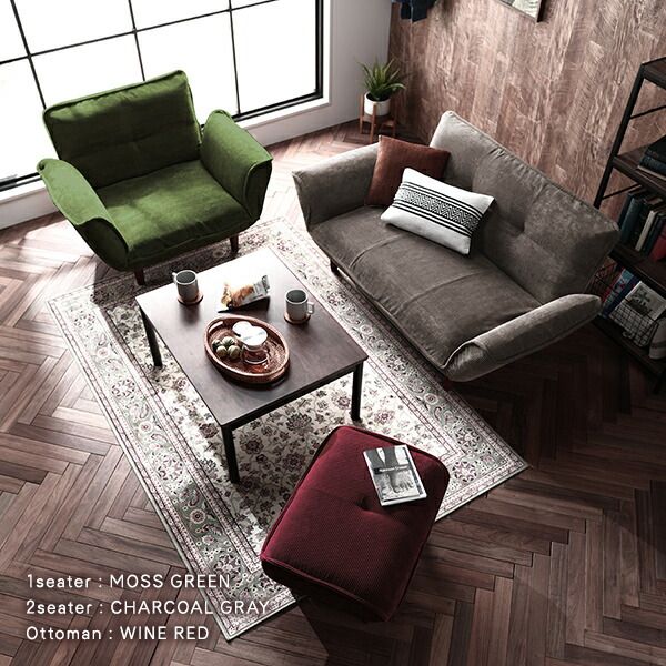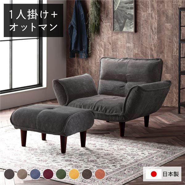 日本製 リクライニングソファー/カウチソファー 1人掛け オットマン付き コールテン生地 グレー 脚部:ブラウン 幅88cm 国産 ソファ ソファー おしゃれ ポケットコイル ローソファ 北欧 リビング ひとり暮らし 代引NG