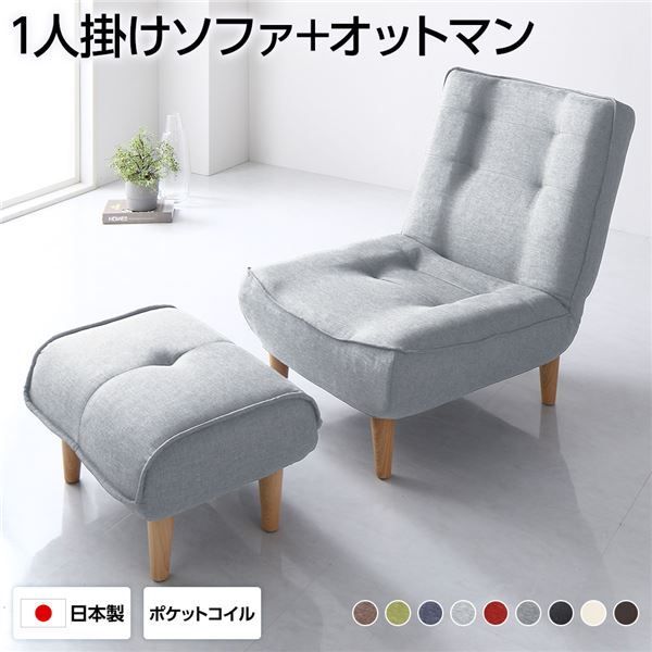 ハイバックソファー フロアソファー 1人掛け オットマン付き タスク生地 ライトグレー 脚部 ナチュラル 幅66cm ポケットコイル使用 リクライニング 脚 取り外し可 日本製 リクライニングソファー代引NG