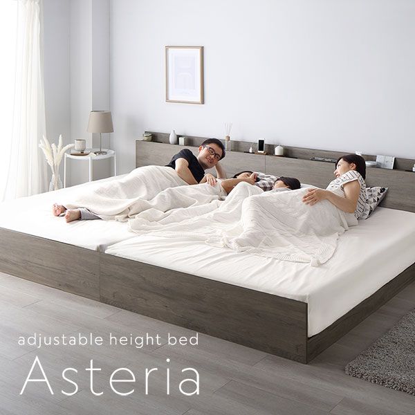 ベッド ワイドキング 240 S+D ベッドフレームのみ ストーングレー 連結 高さ調整可 コンセント 宮付 宮棚付 棚付 すのこ ベッドフレーム ローベッド すのこベッド フロアベッド 連結ベッド ベット 寝具 インテリア家具 ベッドルーム 寝室