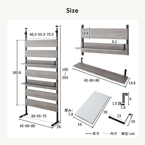 80cm幅:幅80×奥行26×高さ190〜254cm