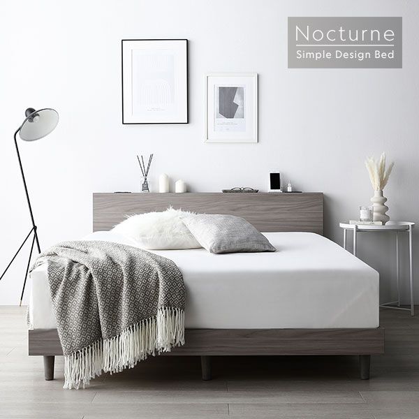 ベッド シングル 2層ポケットコイルマットレス付 グレージュ すのこ 宮付 棚付 コンセント ロータイプ 頑丈 通気性 すのこベッド ベッドフレーム ローベッド フロアベッド シングルベッド ベット