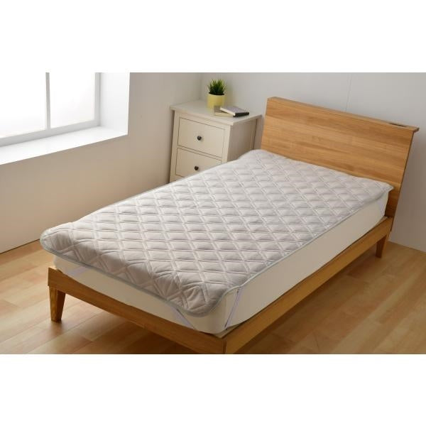 | 【Q-MAX0.5以上のひんやり素材を採用】 肌に感じるひんやり感が心地よいMITASの夏の敷パッド。寝苦しい夜にはこの敷パッドに変えるだけでひんやりと心地よい睡眠時間が得られます。 サラサラとした素材なので汗をかきがちな季節ですが快適にお休みいただけます。 ひんやり感を表すq−MAX値は0.505w/cm2。通常0.2以上でひんやり感があるとされる基準を上回っております。ちょっと熱く感じても敷パッドなので寝返りを打つたびにひんやり感が戻ります。 裏面の素材は、立体的なメッシュ生地を採用していますので熱や群れがこもりがちな夏でも快適。暑さ知らず蒸れ知らずの心地よさをご実感ください。 なかわたは抗菌防臭わたを使用していますので、汗や群れなどで気になる菌やニオイの対策もばっちりです。ひんやり快適プラス清潔な眠りをお届けします。 生地となかわたをきっちりホールドしてくれるキルトは二重のひょうたん型キルトで、何度も洗っても中のわたがよれにくい設計です。 4すみにはゴムバンドが付いているので、ベッドマットレスにも敷布団にも取り付け取り外しが簡単。洗濯の時にも便利な仕様です。 マットレスは20cmまでの製品に対応しています。 カラーは4色をご用意。お好みのカラー、インテリアに合わせたカラーをお選びいただけます。 MITASのQ-MAX0.5シリーズは、敷パッド・リバーシブルケット・枕パッド(まくらカバー)・抱き枕の4種類。それぞれ一緒にお使いいただくことでさらに寝苦しさも和らぎます。 |